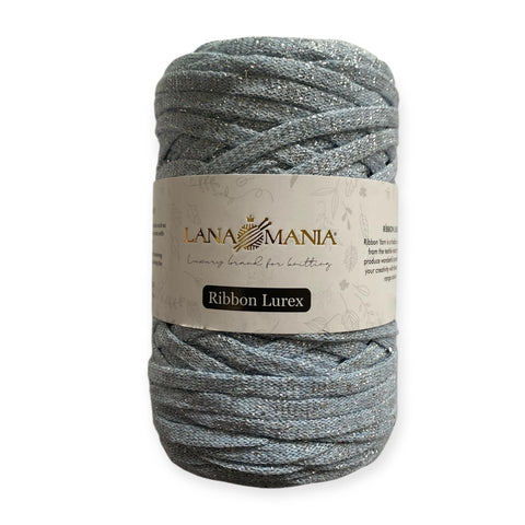 Ribbon Lurex by Lanamania è una fettuccia lurex composta da 70% Cotone Riciclato, 25% Poliestere e 5% Lurex. Una rocca è da 250g e 130m. Si consiglia l'utilizzo di ferri o uncinetto da 6 - 8mm.