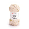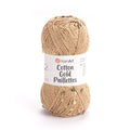 Cotton Gold Paillettes by YarnArt è un filato composto da 82% Cotone e 18% Poliestere. Un singolo gomitolo è da 50g e 140m. Si consiglia l'utilizzo di ferri o uncinetto da 4mm.