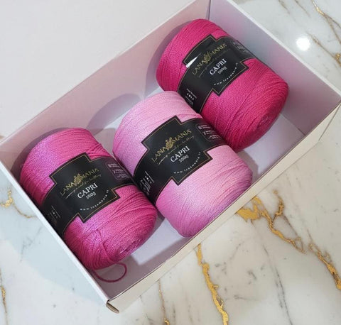 Box di lusso composta da 3 rocche di Capri Cordino by Lanamania, perfette per i tuoi progetti creativi!