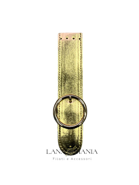 Fibbia per borse 20cm x 4 cm con cerchio in acciaio in oro con diametro da 5.5 cm.