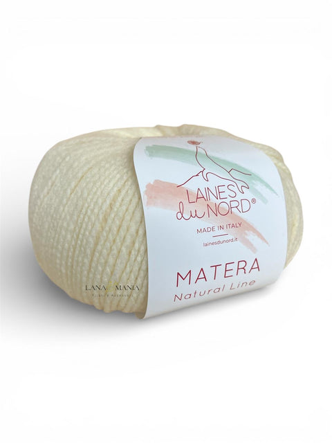Matera è un filato in 100% lana Merino Gentile di Puglia con Filiera Corta, proveniente da pecore cresciute in Italia. Con un titolo intermedio e leggermente elastico, coccola nelle stagioni più fredde. Resistente e leggermente secco al tatto, è scorrevole sui ferri e antipilling. Questo filato versatile si adatta a vari tipi di lavorazione, perfetto per maglioni comodi e informali, ideale per intrecci e punti in stile Aran con rombi e trecce. Particolarmente indicato per la lavorazione "Fair Isle" a più colori, tipica dei maglioni invernali.