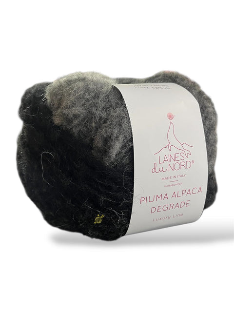 Un mix raffinato di alpaca e lana con delicate tonalità dégradé che si fondono in transizioni naturali e armoniose. Piuma Alpaca Dégradé è perfetto per lavorazioni eleganti e ricche di movimento, dona profondità cromatica e leggerezza a ogni capo, esaltando ogni punto con un tocco sofisticato.